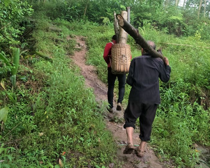 不通公路,村民劳动靠肩扛背驮。
