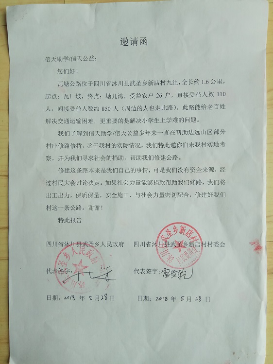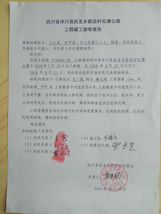 (1)爱心人捐款、村民投工投劳一起修土路,干季可以通车;