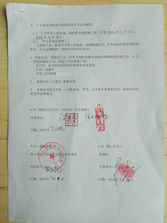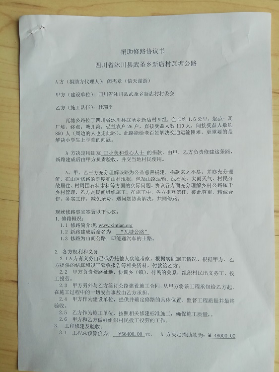 捐助修路协议书