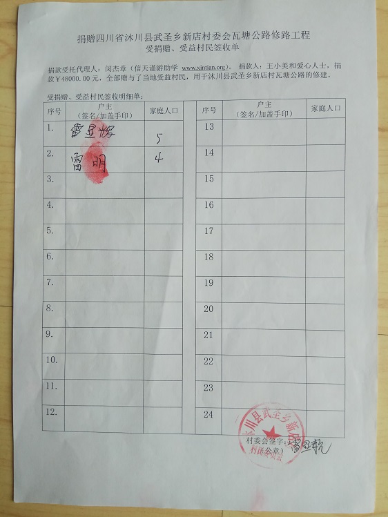 受益村民签字单