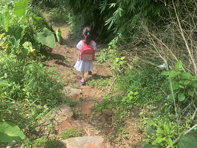 小学生上学之路,等修好了路之后,就可以坐拖拉机、面包车上学了,或者骑自行车上学了。