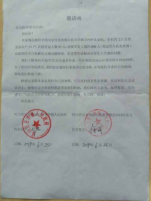 注:此路有很坚硬的岩层,破碎难度大且费用较高,经志愿者刘永奇和当地政府、村委协商后达成意见,修建此路所有的岩层破碎费用由当地政府解决。