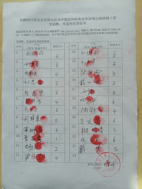 受益村民签字单