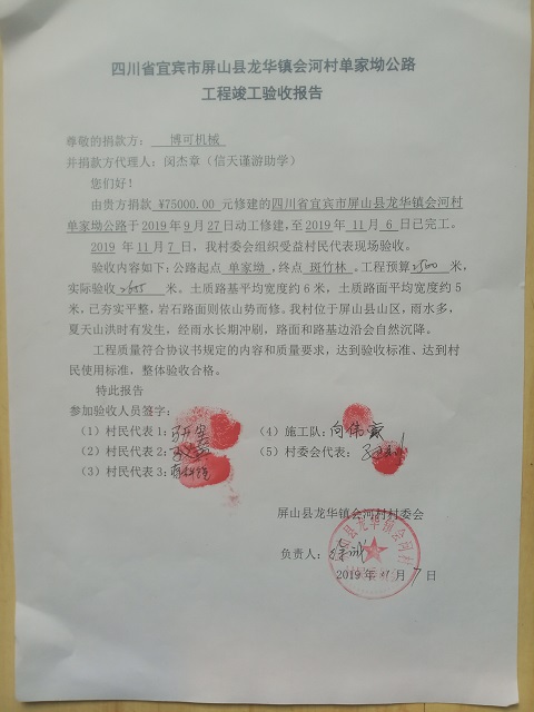 标题: 第232条:四川省宜宾市屏山县龙华镇会河村单家坳公路(博可机械)