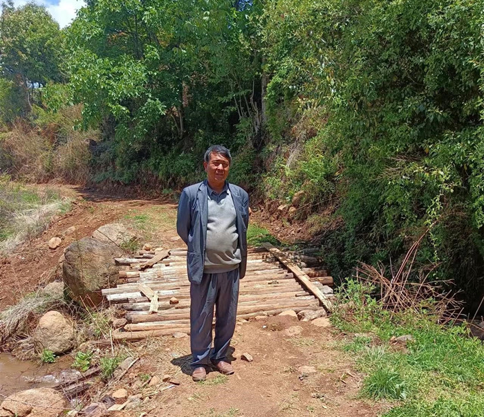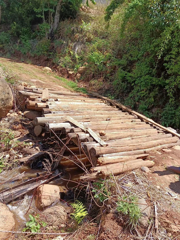 现在路上有一座木头小桥,到了雨季洪水下来,村民和学生就无法通行,需要重新修桥。