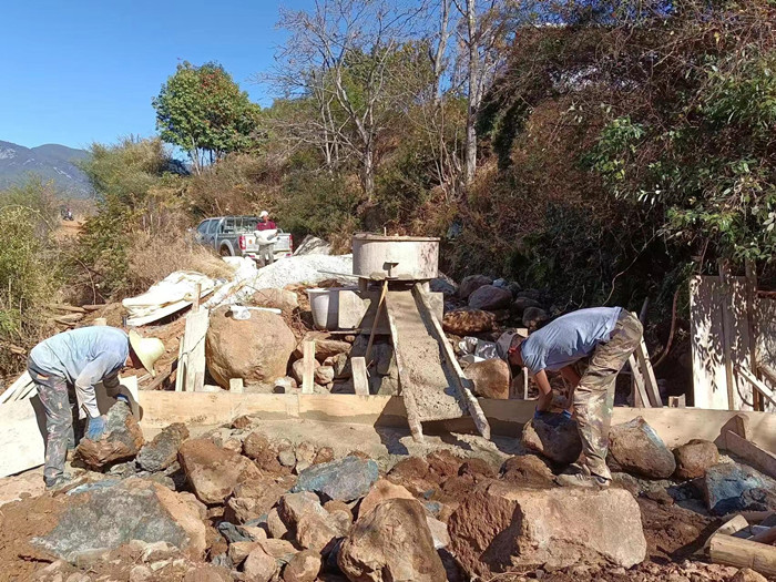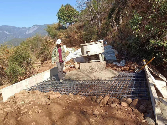 (2)小桥连建:2019年9月12日,云南省宁蒗县翠玉乡蔡家坪王家村路上小涵管堵塞,河水从路上漫过,由于水流太大,一名上学娃娃被河水冲倒,幸好被一名路过大人发现并救起。山村有很多这样的路段,或者的一个小涵管,或者就是干路,一旦遇到下大雨,就水漫路面,村民和学生通行困难或者无法通行,存在安全隐患。