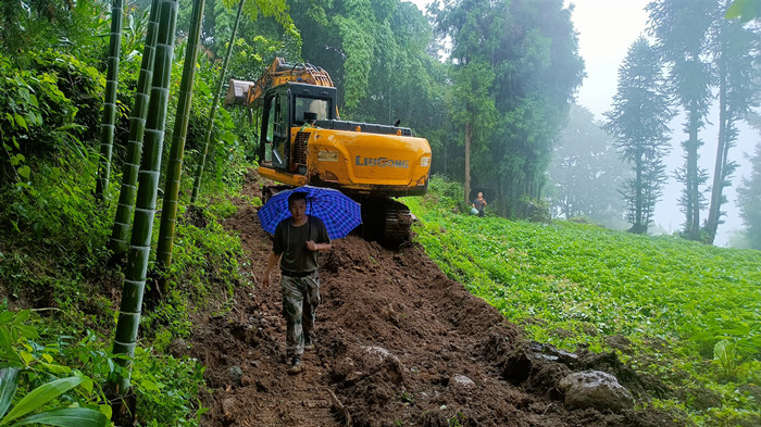 村民劳动,他们渴望修路,修一条能跑四轮车的路,这样就不用肩扛背驮了。