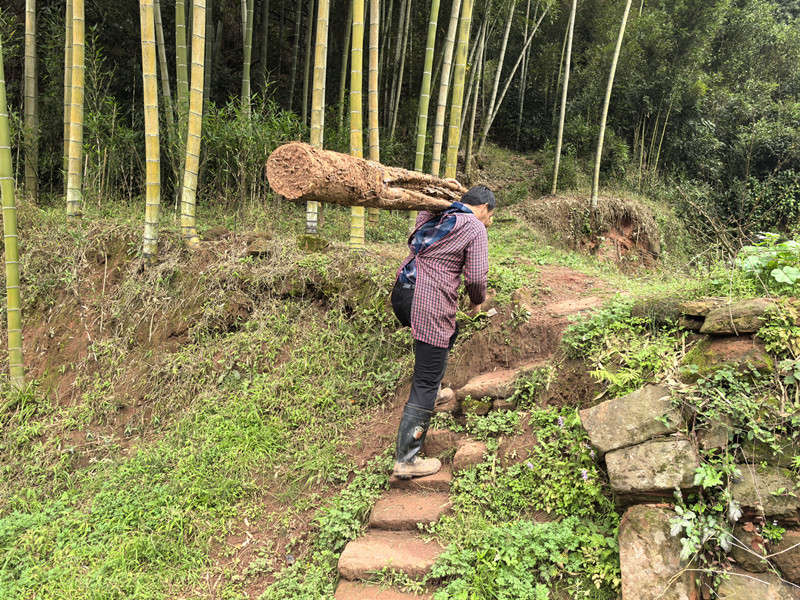 村民劳动,肩扛背驮。