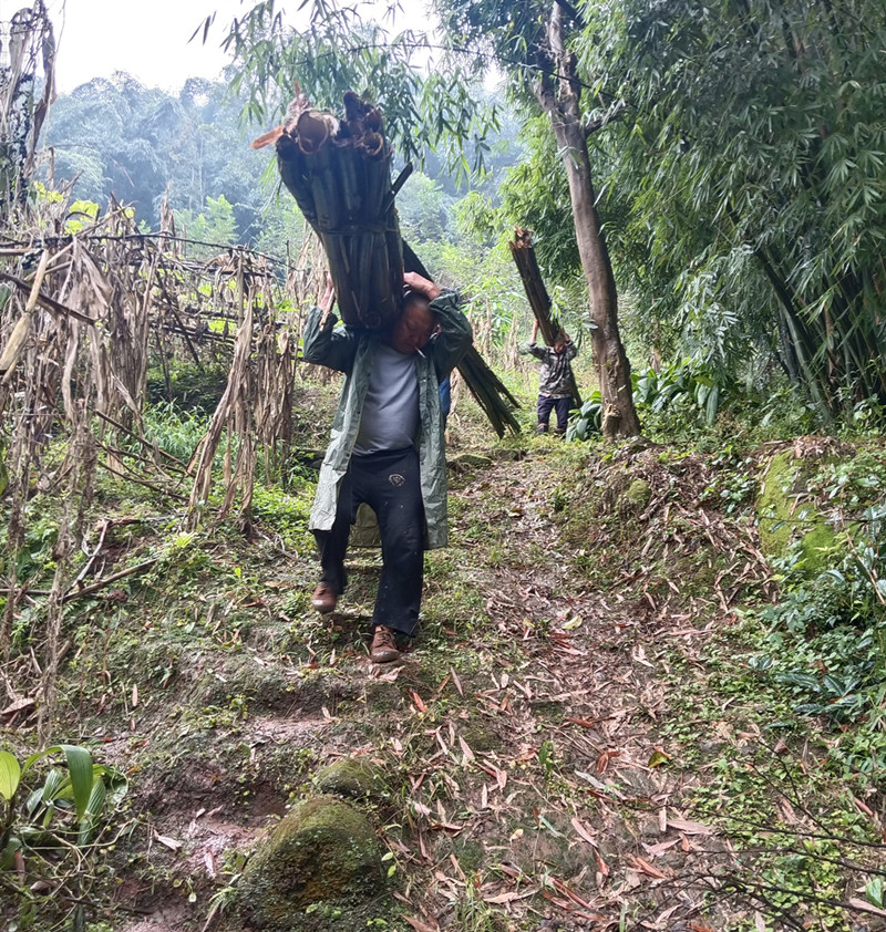 村民劳动,他们渴望修路,修一条能跑四轮车的路,这样就不用肩扛背驮了。