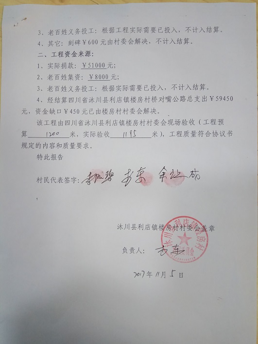 拟捐款:¥51000元,不足部分由村委会解决。