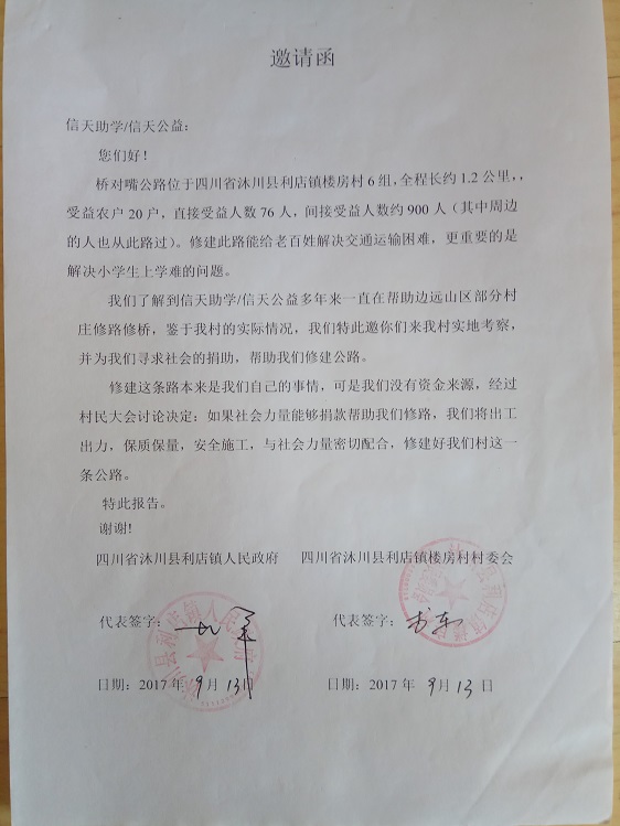 (1)爱心人捐款、村民投工投劳一起修土路;