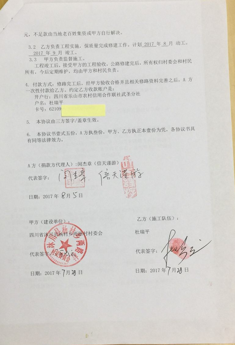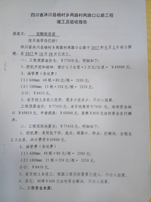 (5)修路预算分好几部分,有挖掘机、涵管、炸药爆破(山崖需要爆破)、堡坎、村民义务工、征地等。修路,我们不全包,我们出一大部分钱:挖掘费用、山崖爆破等。村民出义务工、涵管、征地费、村民小额集资。