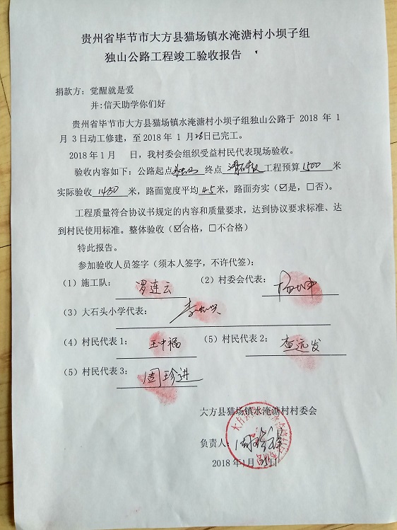 标题: 第164条:贵州省大方县猫场镇水淹塘村独山公路(觉醒就是爱)