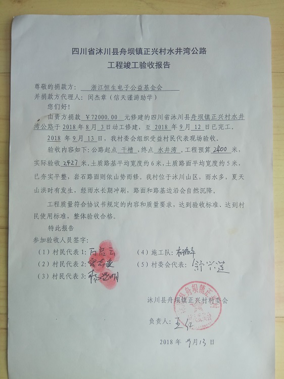 (1)爱心人捐款、村民投工投劳一起修土路,干季可以通车;