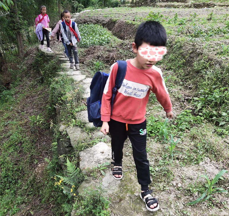小学生上学之路,等修好了路之后,就可以坐三轮车、面包车上学了,或者骑自行车上学了。
