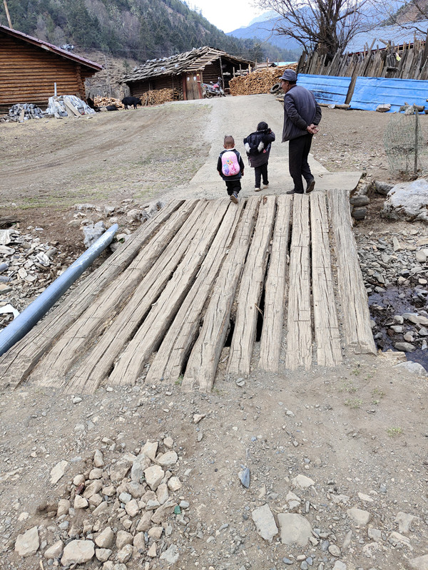 其中一座桥,现在是几根木头做的桥,遇到洪水,就无法过桥。