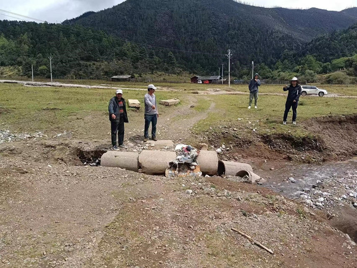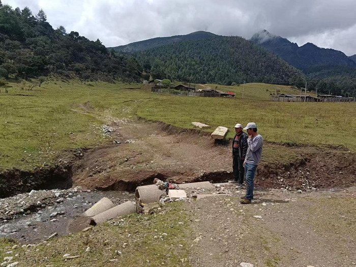 云南省宁蒗县翠玉乡春东村委会牦牛场村-羊涧槽1桥、2桥、3桥、4桥位于羊涧槽村落中间,羊简槽是一个地名,海拔为3700米,属于牦牛场自然村,牦牛场村民也居住在羊涧槽,随着季节的变化,村民在不同海拔的地方放牦牛,住在海拔不同的地方,海拔4500米的地方也有牦牛场村的牧民居住。牦牛场村有农户45户,人口大约为200多口,上下学学生有中小学生20人左右,是一个以放牧为生的藏族村寨。村落里的水流量较大,而且地势低洼,没有修建桥梁雨季无法通行,存在很大的安全隐患。修桥之后,直接受益人将达200多人,间接受益人将达300多人。