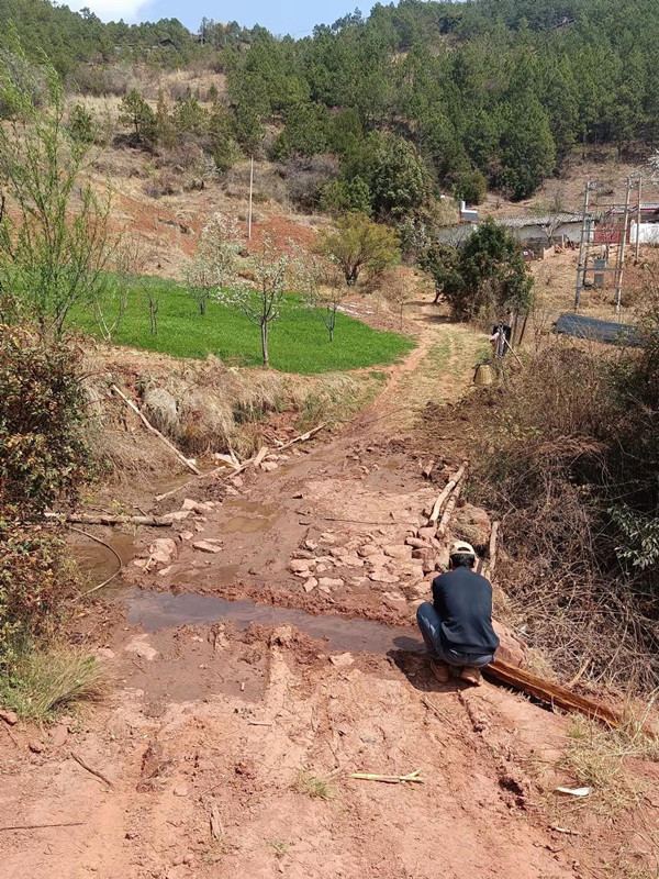 (2)小桥连建:2019年9月12日,云南省宁蒗县翠玉乡蔡家坪王家村路上小涵管堵塞,河水从路上漫过,由于水流太大,一名上学娃娃被河水冲倒,幸好被一名路过大人发现并救起。山村有很多这样的路段,或者的一个小涵管,或者就是干路,一旦遇到下大雨,就水漫路面,村民和学生通行困难或者无法通行,存在安全隐患。