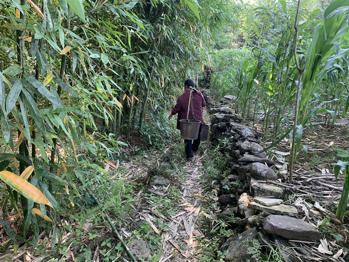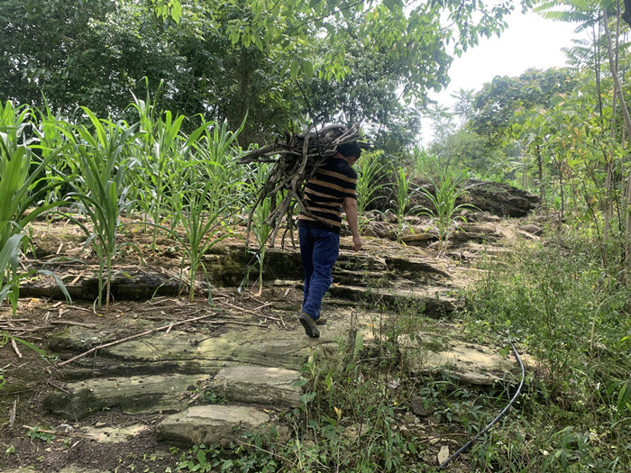 村民劳动,他们渴望修路,修一条能跑四轮车的路,这样就不用肩扛背驮了。