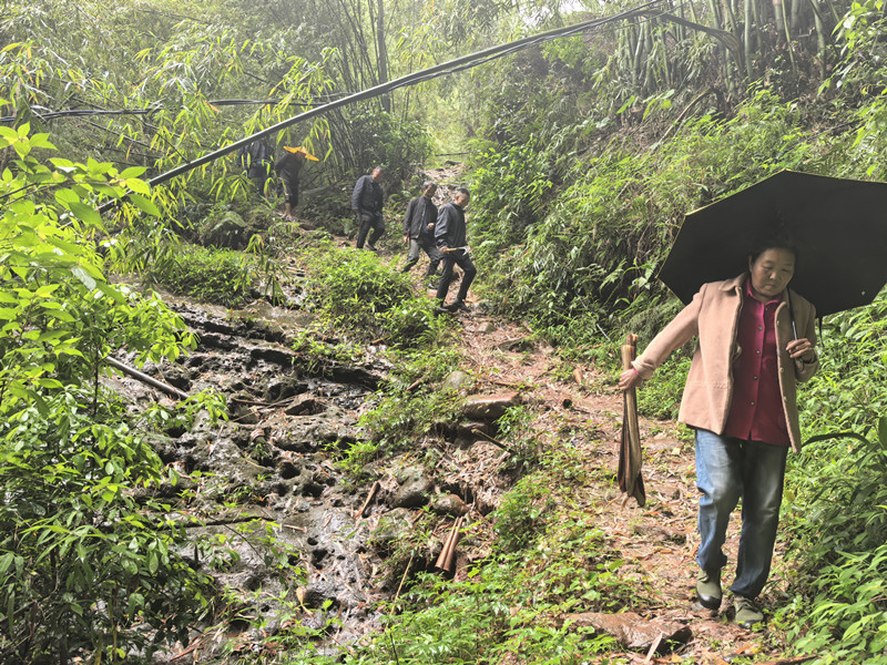 勘察路线,计划把这里的羊肠小道扩宽修建成能跑四轮车的乡间土质公路。