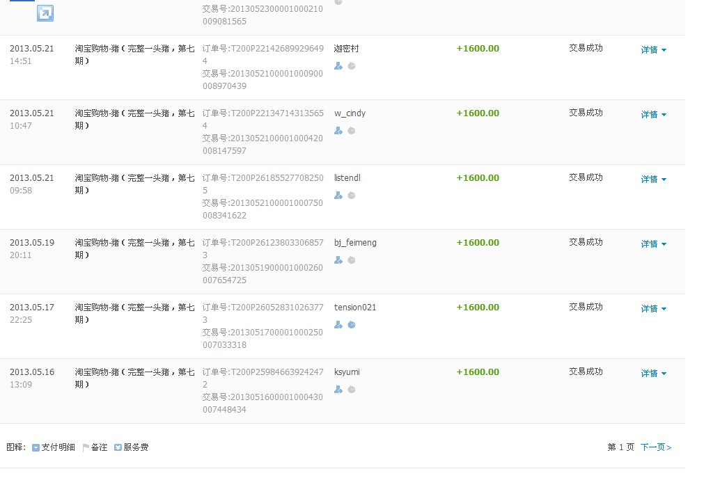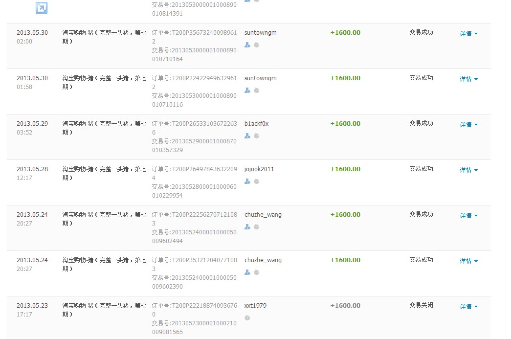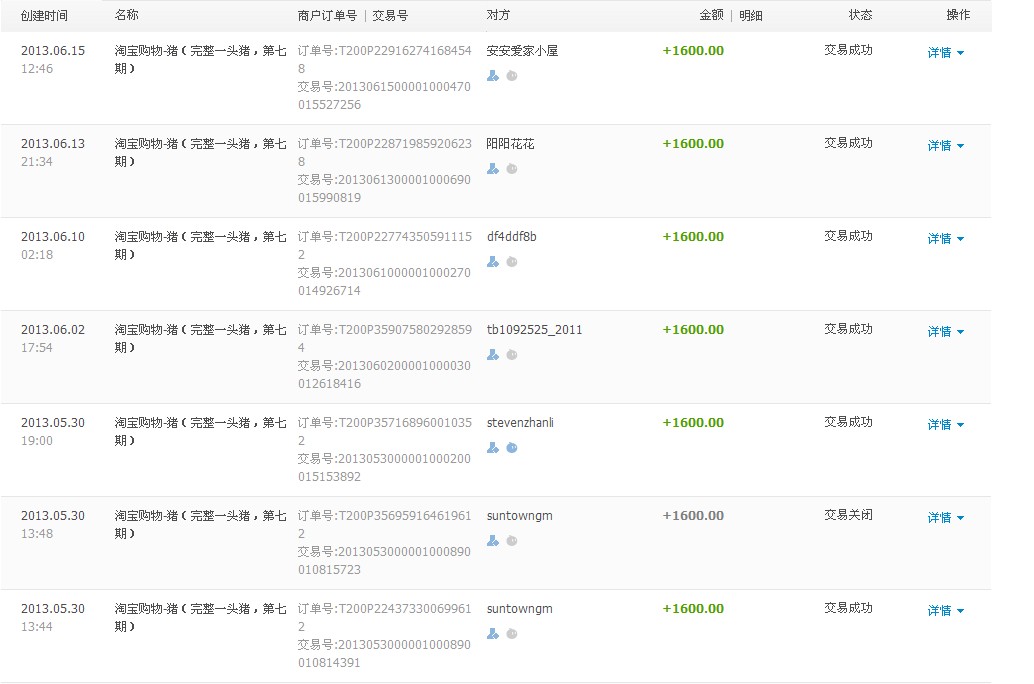 2013年六一猪宴淘宝收款统计——整猪卖第七期