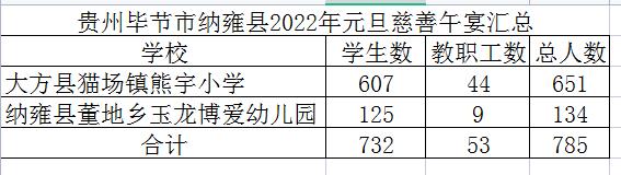 贵州毕节纳雍县2022年元旦慈善午宴各校人数统计
