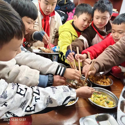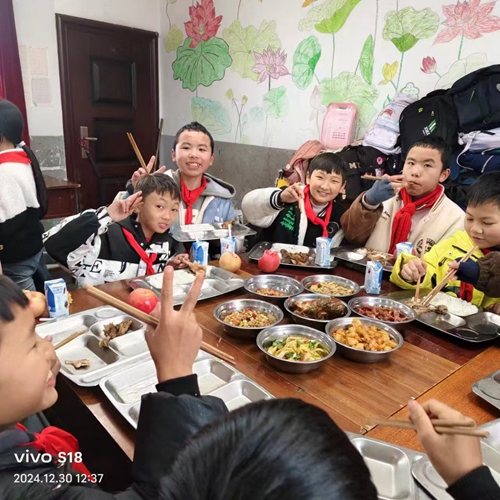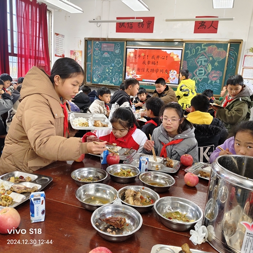 袁家溪小学师生877人,小谷溪小学师生222,民主镇中心校988人,这一次元旦慈善午宴师生一共2087人