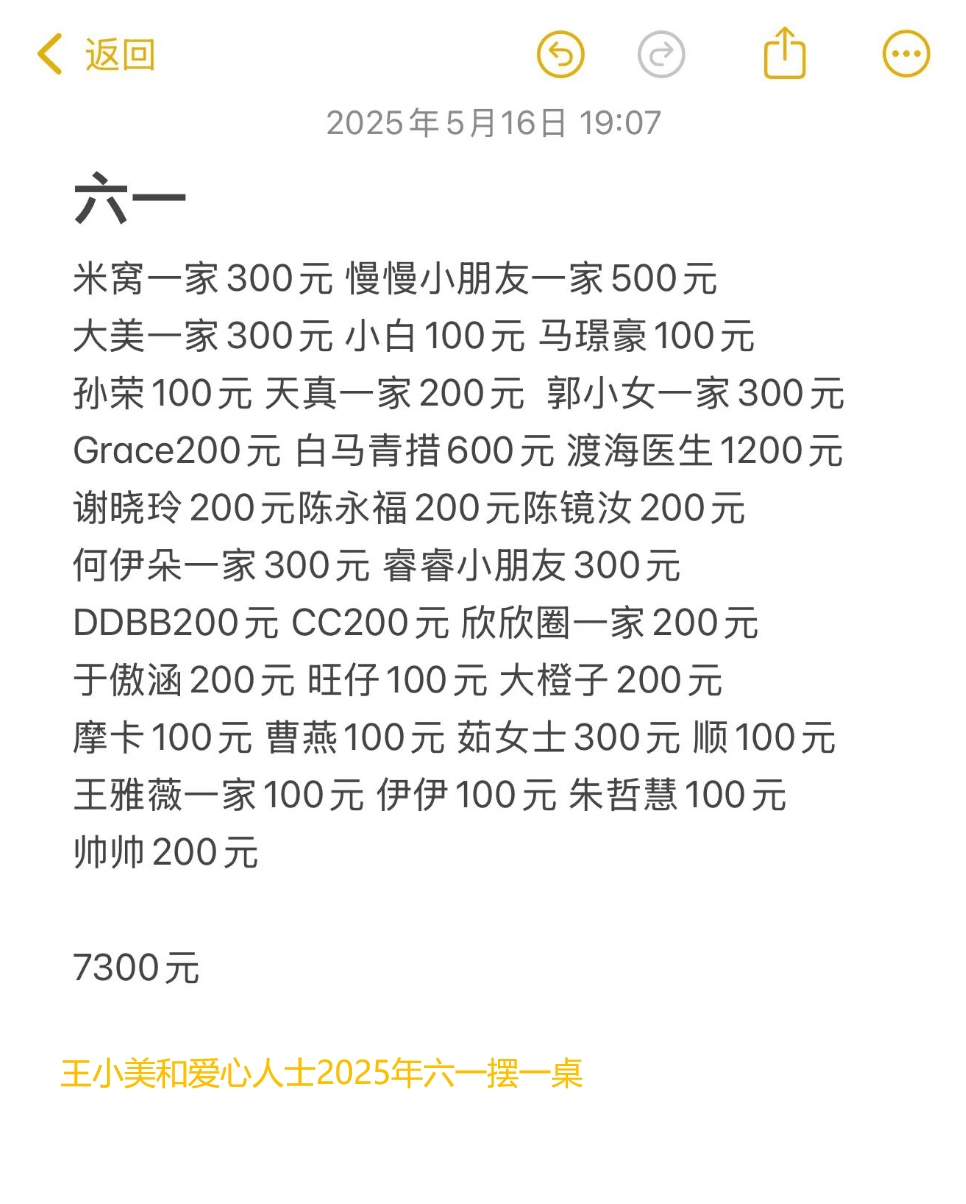 (8)2025.05.16,王小美和爱心人士们:7300元;