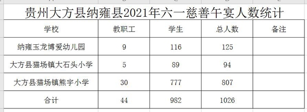 贵州大方县纳雍县参加人数统计表: