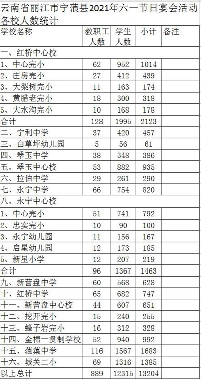 云南省丽江市宁蒗县2021年六一节日宴会各校人数统计.jpg