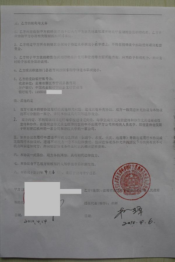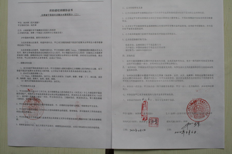 一、云南省丽江市宁蒗县烂泥箐乡水草坝完小修建协议书见下图: