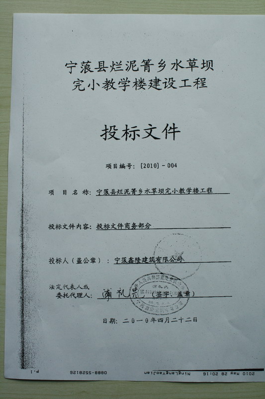 二、宁蒗县烂泥箐乡水草坝完小教学楼建设工程投标文件: