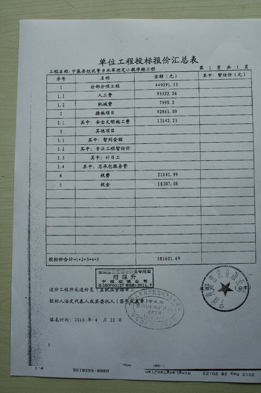 5、其余附属工程款由教育局配套补充,附属工程有宿舍改造,伙房、围墙、大门、厕所等等,根据主体工程施工情况具体再定附属工程项目及造价。