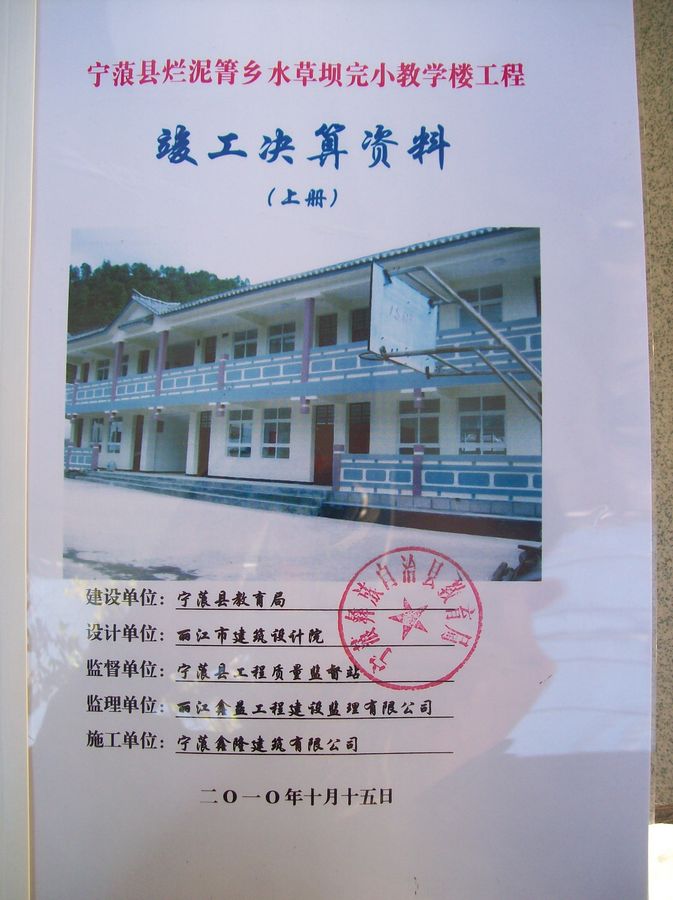 三、宁蒗县烂泥箐乡水草坝完小教学楼建设工程决算文件: