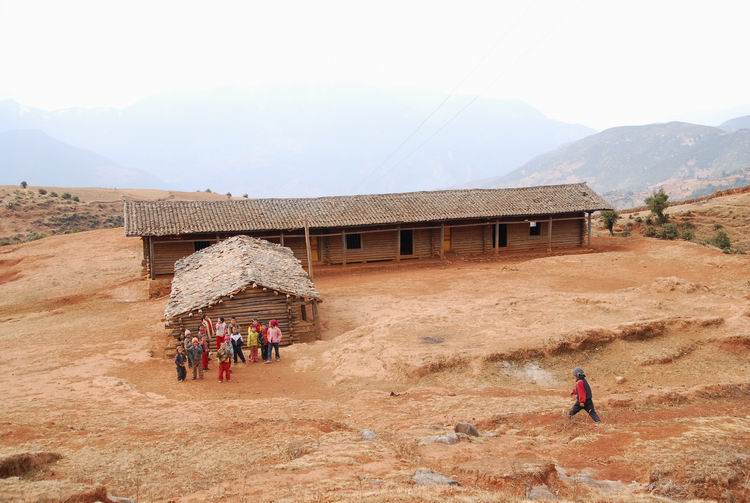 我们一行三人在土库村开始离开丽江市至宁蒗县的主干道,开始往山里走。离开村庄越远,路况越来越差。经过一个半小时,我们来到了长坪自然村的丫口。这次走访的拖拉坪小学就能看到。从丫口开始下坡,路面更差了。车在灌木林里盘旋着下降,在半个小时后终于临近了村子。2个小时只行驶了25公里,路况可见一斑。