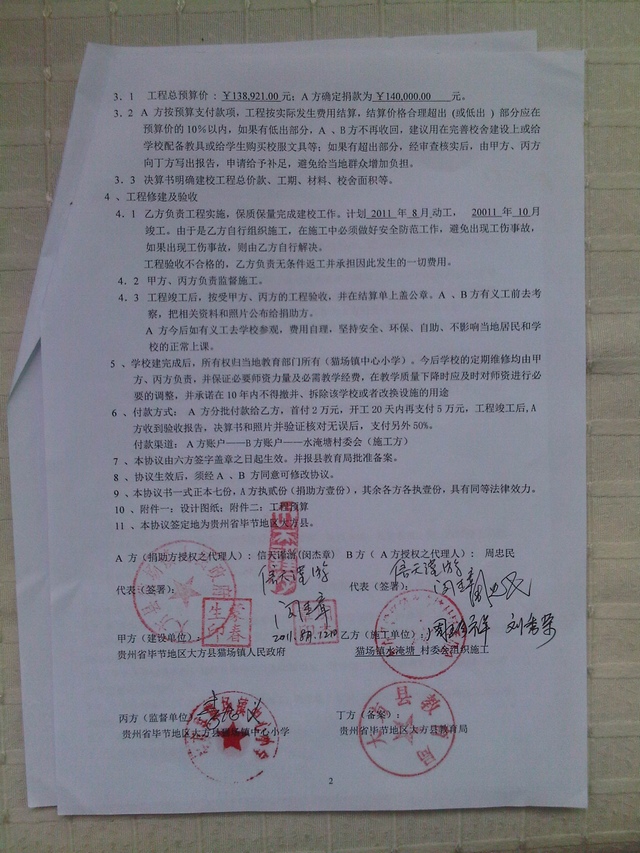 三、《资助建校协议书》及附件《图纸》和《工程预算单 》