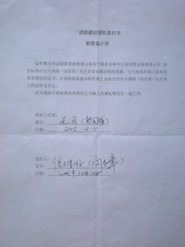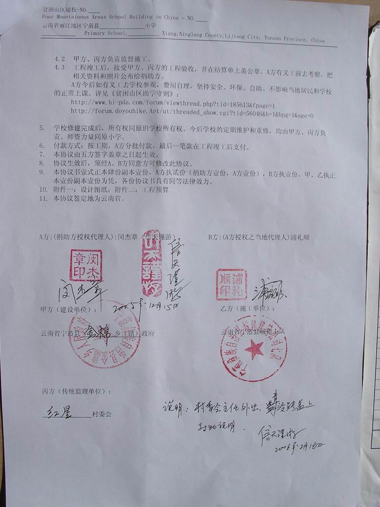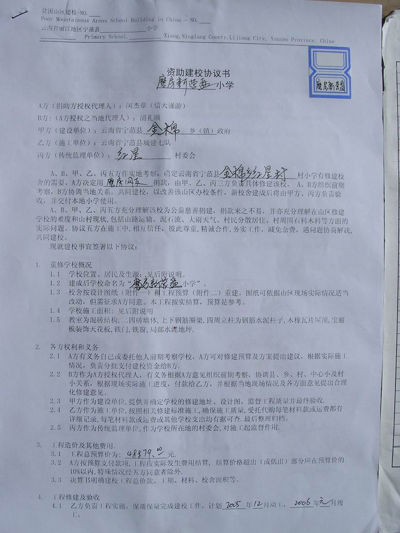 二、《资助建校协议书》和《工程预算单》
