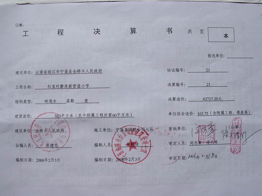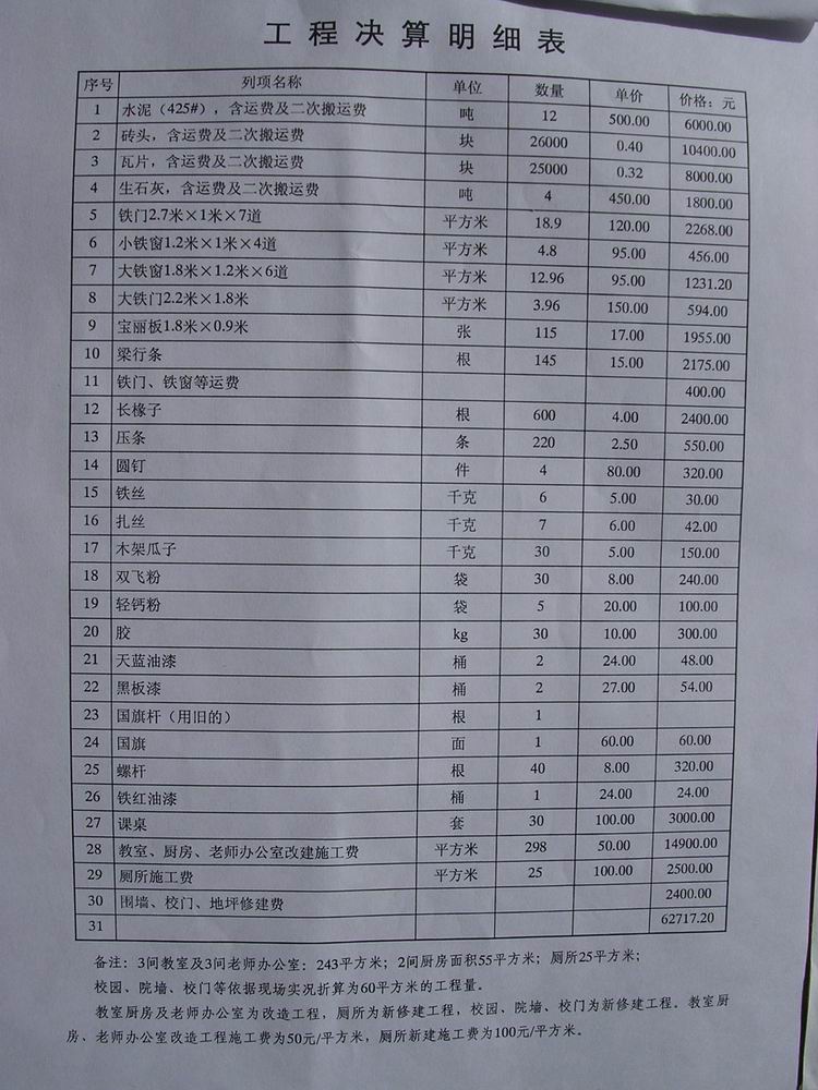 新营盘小学工程预算单:
