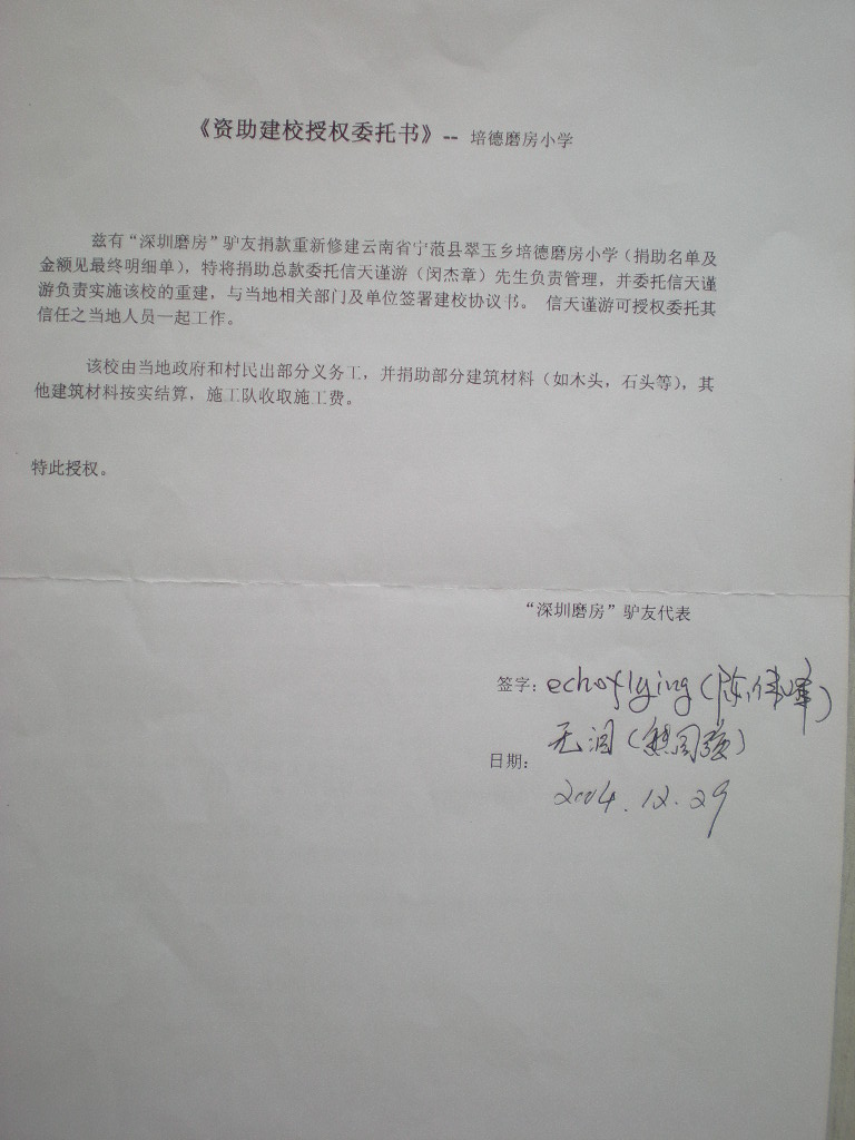 一、《资助建校授权委托书》及附件《捐款明细单》