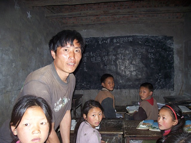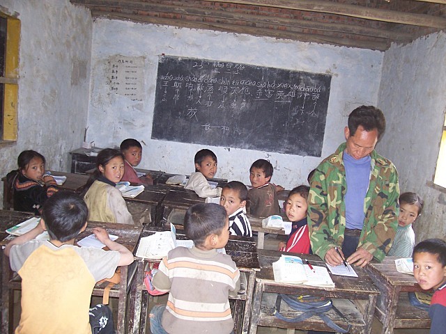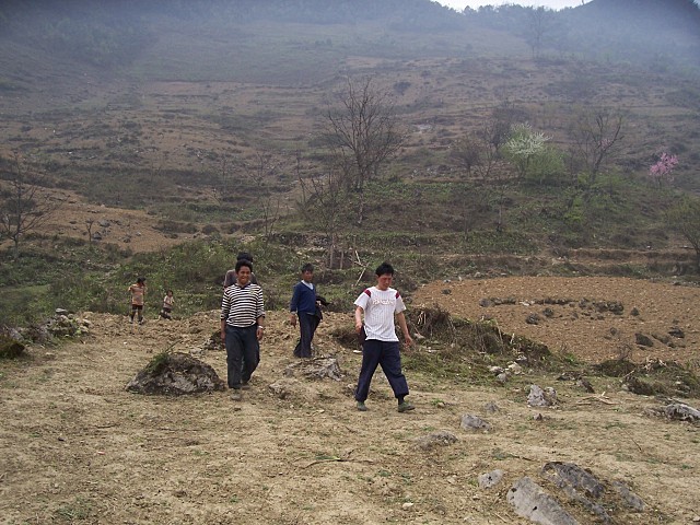 (5)教室、宿舍地面硬化 (所用碎石由村民义务投工采集破碎)