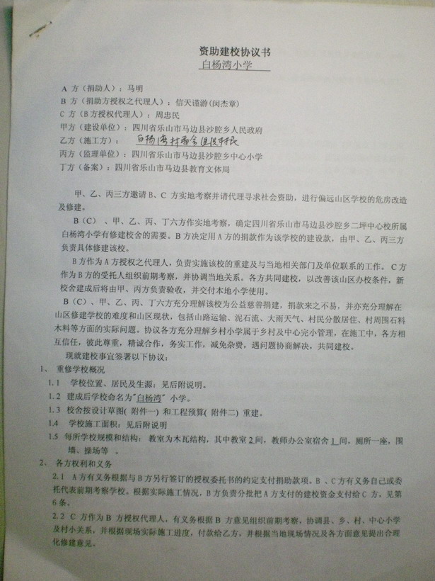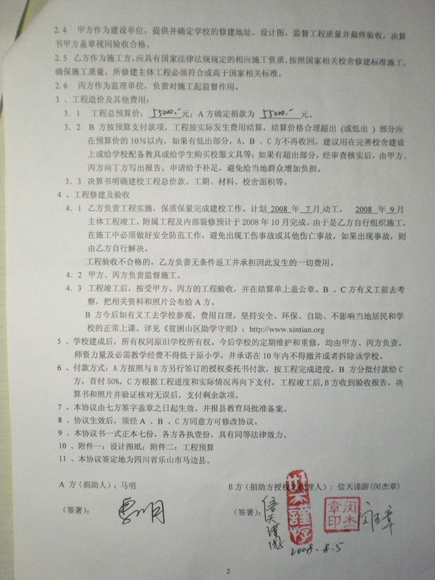 二、《资助建校协议书》及附件《图纸》和《工程预算单 》