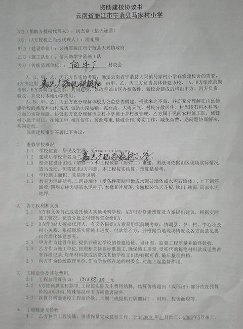 三、《资助建校协议书》及附件《图纸》和《工程预算单 》