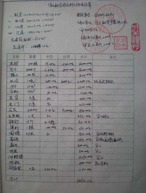 2. 6所连建小学预算/结算对照表明细如下: