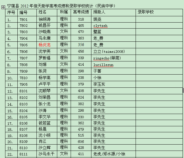 » 2012年受助学生高考成绩及录取院校(2012年7月20日更新)