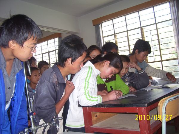 9、我们和当地老师达成如下共识:如果捐助人碰到学生提到需要东西,比如要眼镜、随身听、字典、书籍或有其他方面的情况。可以告诉学生先把他们的困难告诉老师,由老师落实具体后再转告给我们。