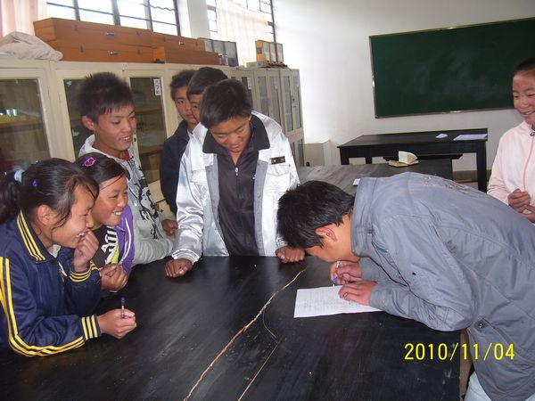 5、我们和当地老师达成如下共识:如果捐助人碰到学生提到需要东西,比如要眼镜、随身听、字典、书籍或有其他方面的情况。可以告诉学生先把他们的困难告诉老师,由老师落实具体后再转告给我们。