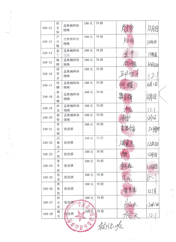 第二排(从左到右):349-11金鑫 349-12肖文华 349-13卢万顺 349-14金平 349-15杨辉 349-16邱学才 349-17何耀 349-18鲁金梅 349-19沙龙 349-20谢智