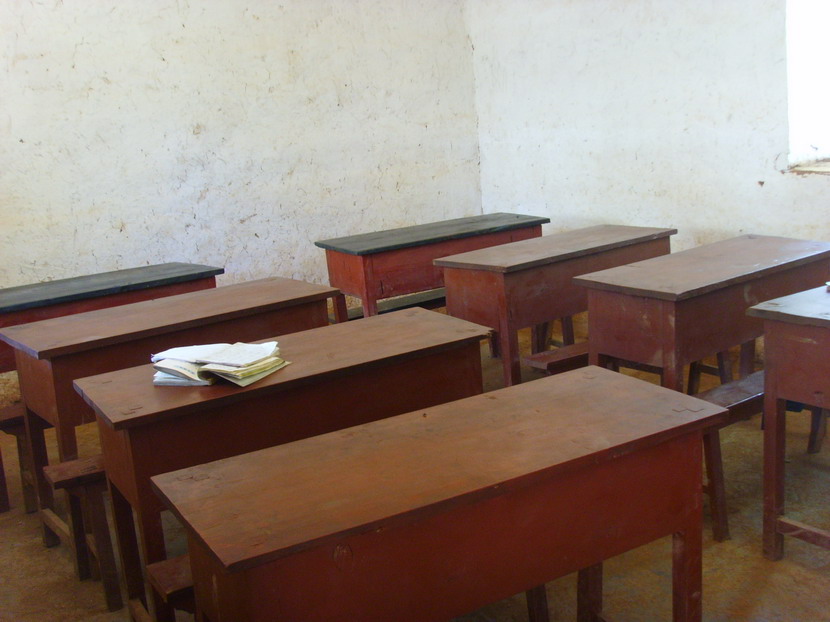 库土小学新桌凳、讲台和黑板:
