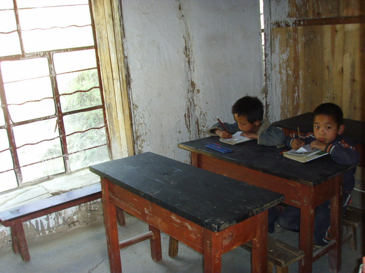 07年在拉佰乡修建的小学,没有配备桌凳、讲台、黑板等。08年初计划统一配备,共10所小学,费用17925元。