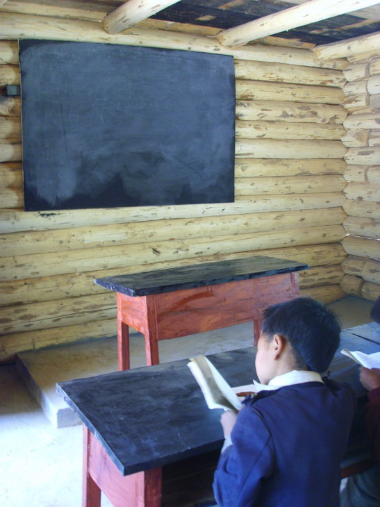 次瓦小学新桌凳、讲台和黑板: